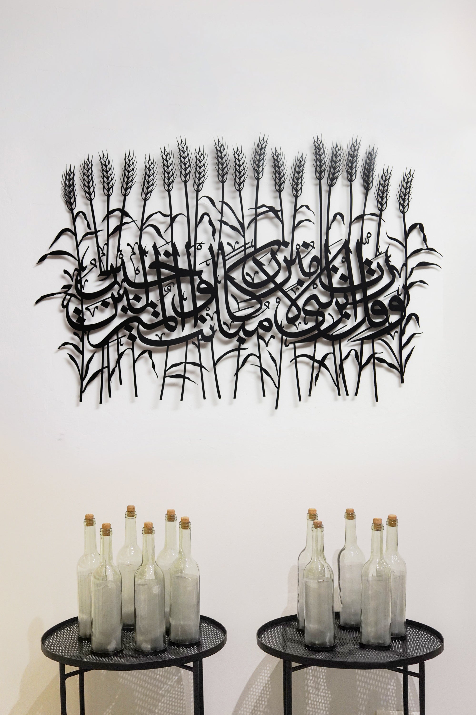 Like a message whispered through a wheat field, this sculptural calligraphy merges nature and script in a striking wall installation. Ideal for display above a sofa, dining area, or hallway entrance, it brings poetry and form together in quiet harmony.